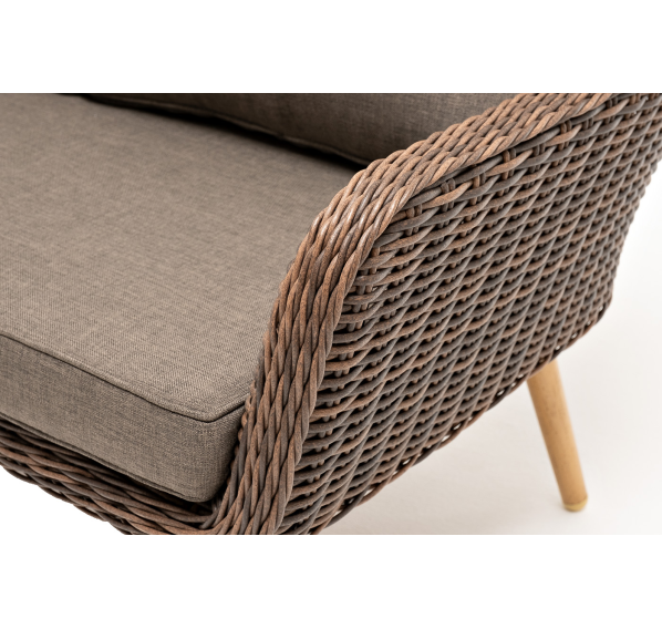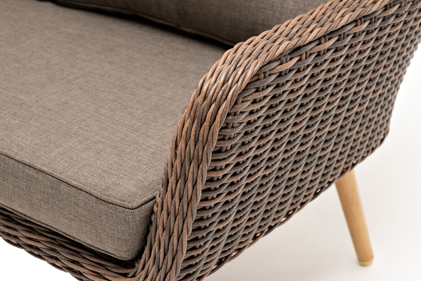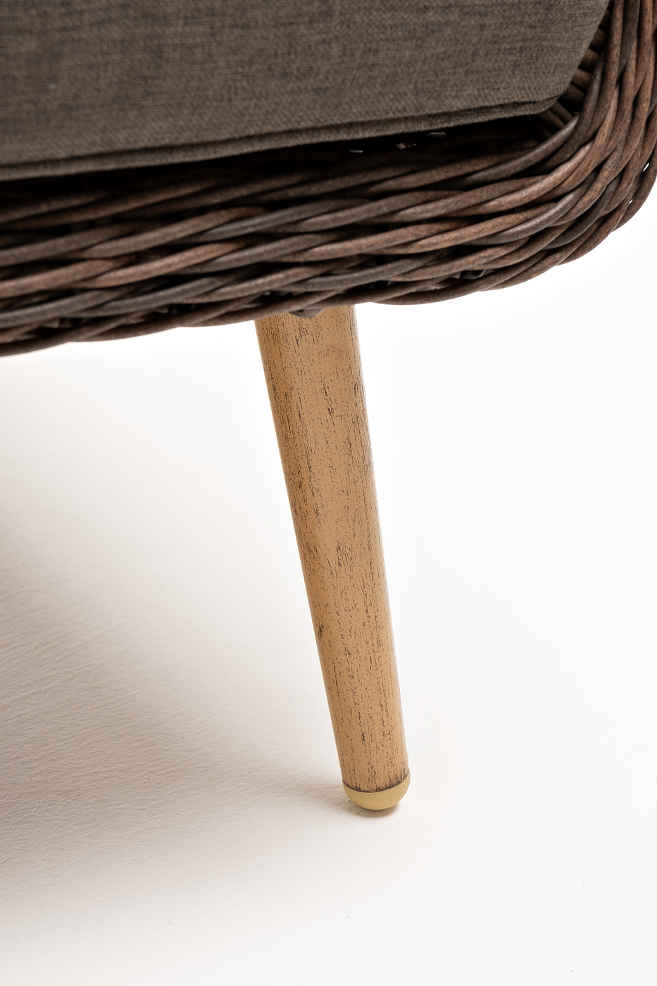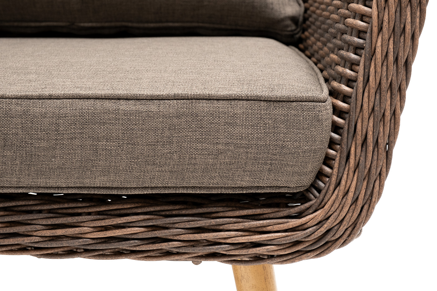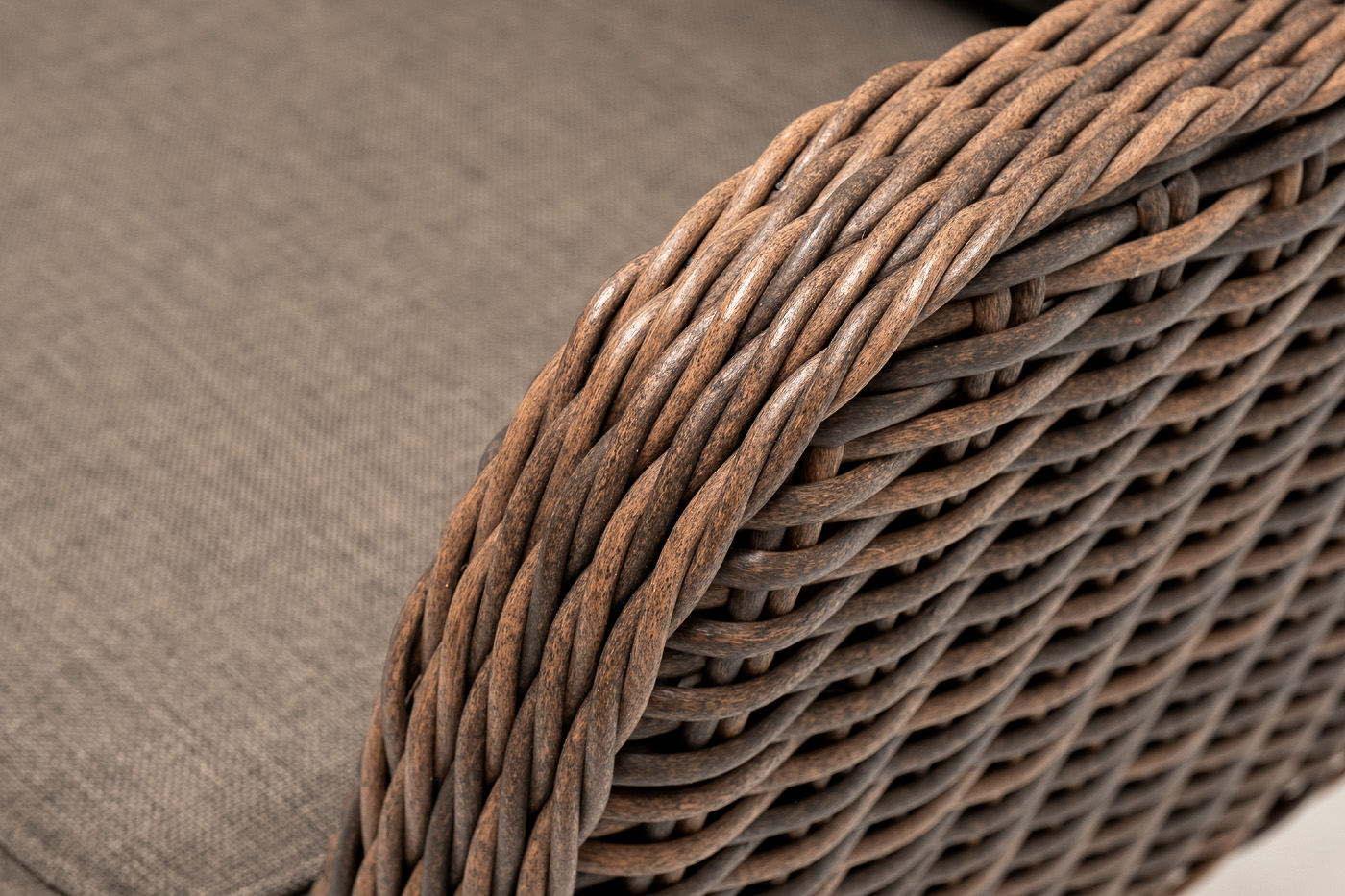 Для оплетки каркаса используется высококачественный искусственный ротанг. Мебель выполнена в коричневом цвете.