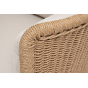 Журнальный столик выполнен из алюминия, окрашенного износостойкой краской, а его оплетка выполнена из круглого искусственного ротанга ручного плетения - 7 мм соломенного цвета. Столешница - овальная, выполнена из искусственного камня белового цвета.