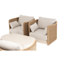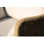 Плетеная мебель дополнена удобными подушками в бежевых чехлах. При их изготовлении используют полиэстер, плотность – 300гр/м2. Он обрабатывается влагоотталкивающей пропиткой для повышения защитных свойств материала.