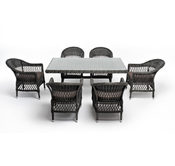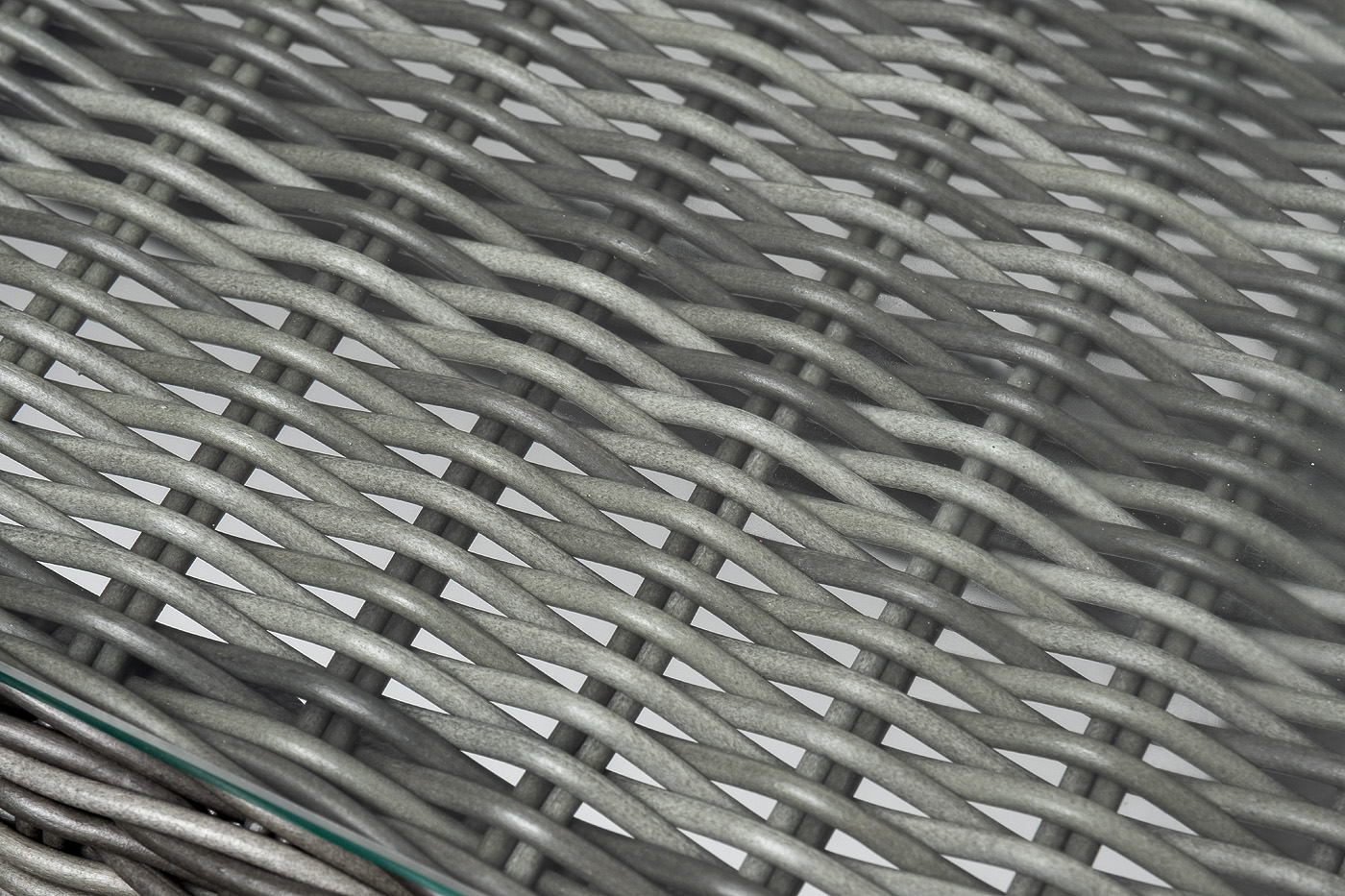 Алюминий используется при создании прочного каркаса мебели. Оформлен ручным плетением из круглого искусственного ротанга графитового цвета.