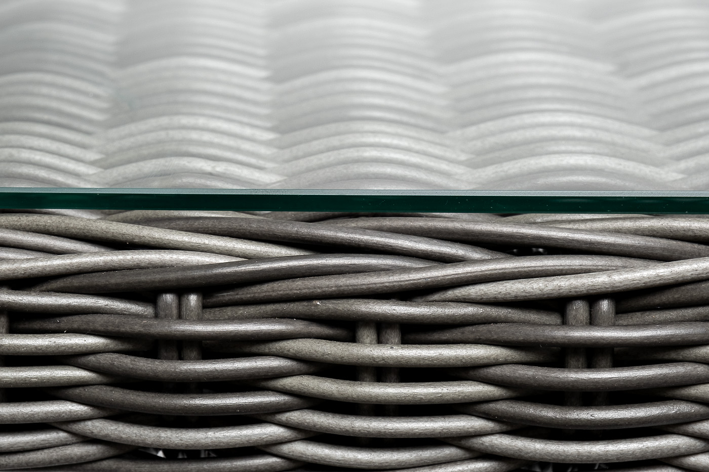 В качестве рабочей поверхности плетеного обеденного стола выступает стеклянная столешница, которая крепится при помощи вакуумных силиконовых держателей и поставляется в собранном виде.
