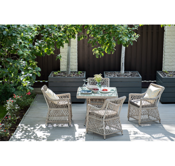 В комплект к стульям предусмотрены подушки со съёмными чехлами, которые обработаны влагоотталкивающими пропитками.