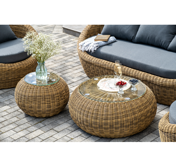 Поверхность плетеного столика представляет столешница из закаленного стекла – 5 мм.