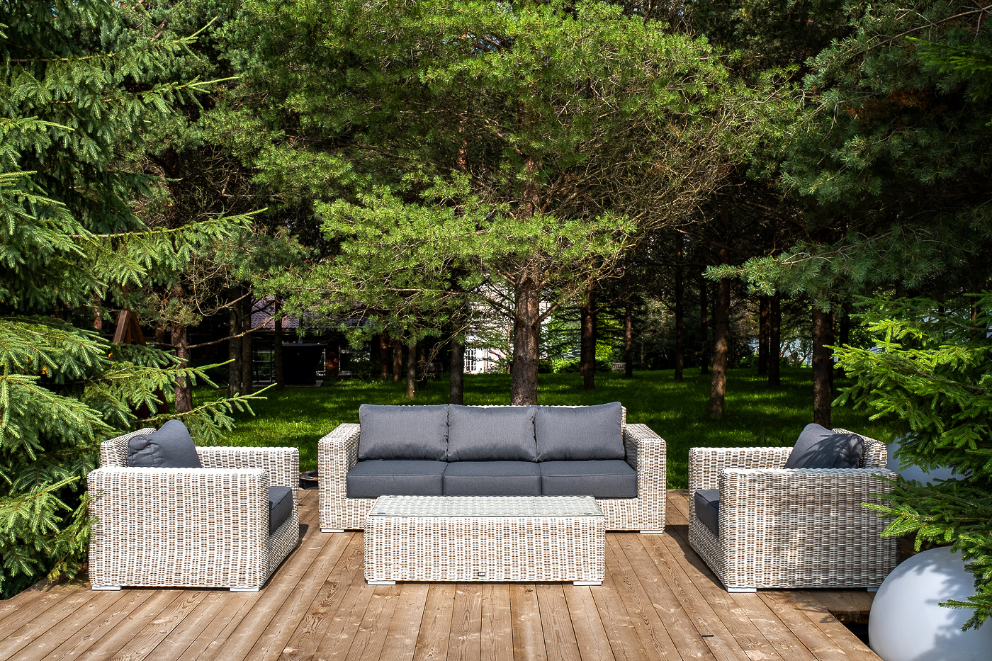 Комплект «Боно» с плетением из искусственного круглого ротанга для обустройства лаунж-зоны.