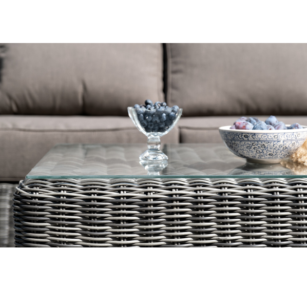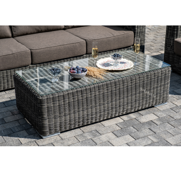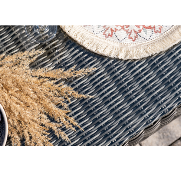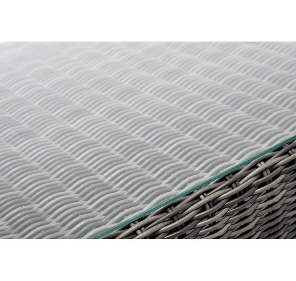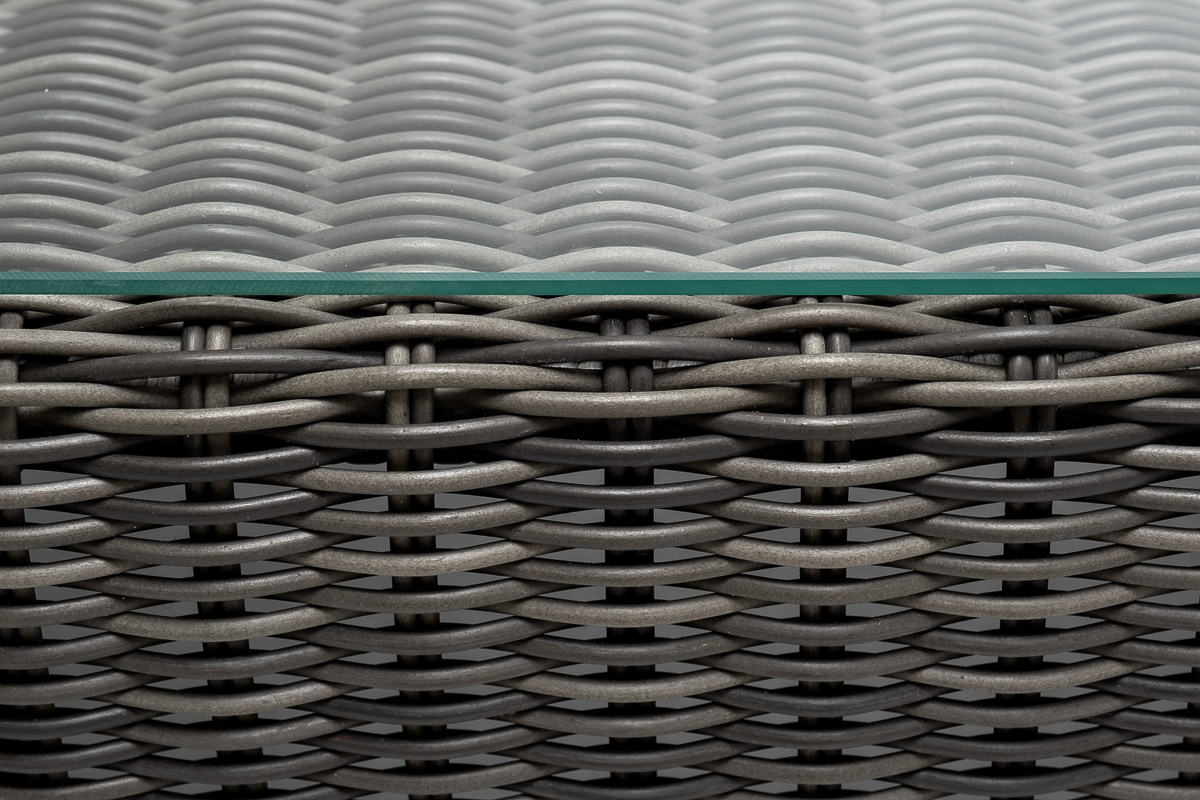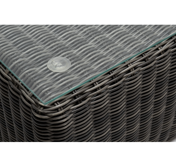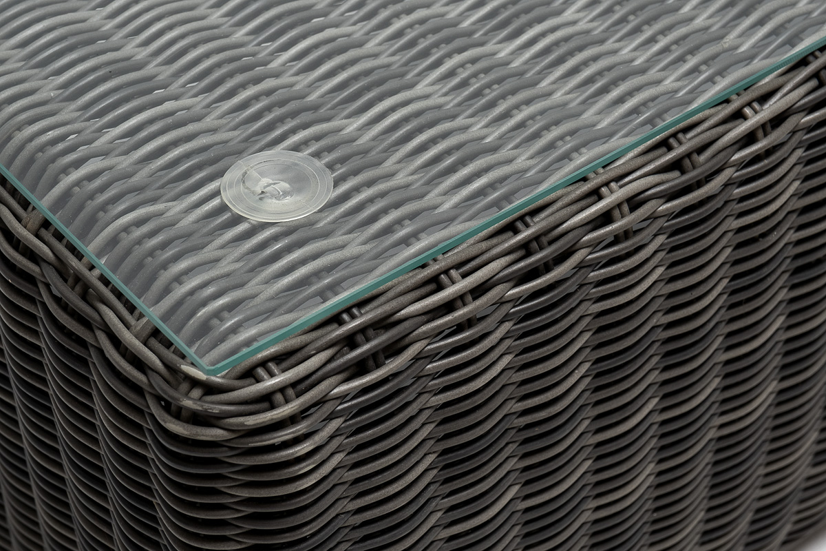 Поверхность плетеного столика представляет столешница из закаленного стекла – 5 мм.