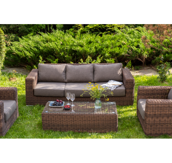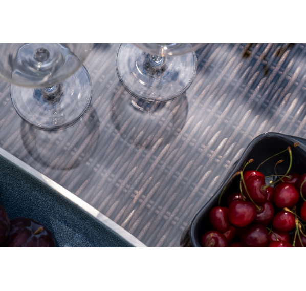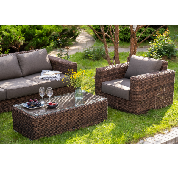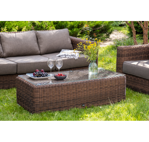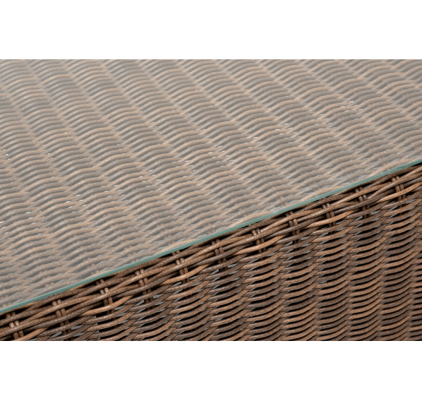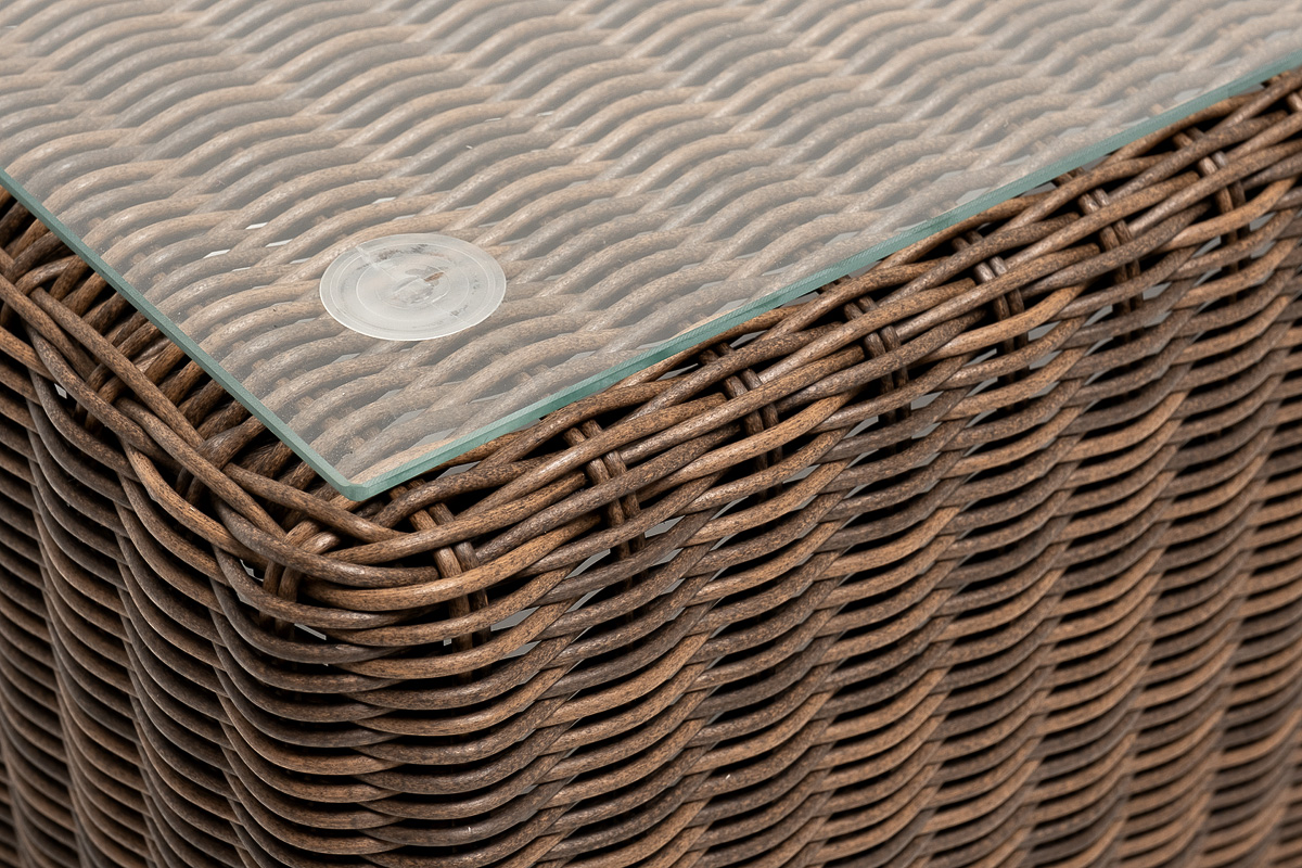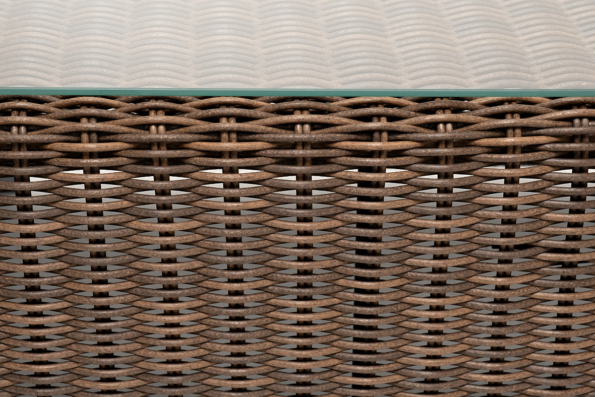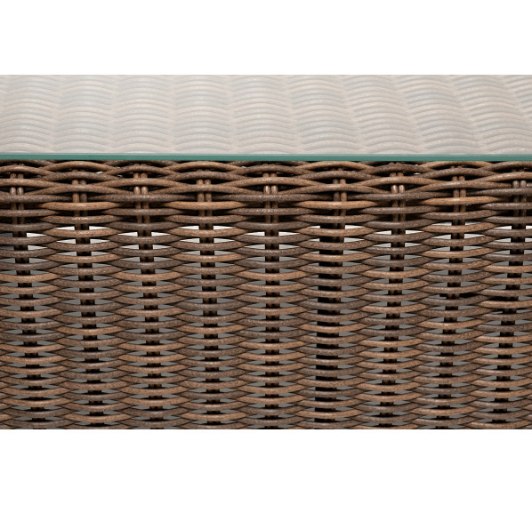 Поверхность плетеного столика представляет столешница из закаленного стекла – 5 мм.