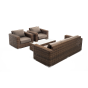 На креслах и диване предусмотрены мягкие подушки, съёмные чехлы которых пошиты из полиэстера, плотностью 300гр/м2. Ткань в обязательном порядке пропитывается влагоотталкивающими составами.