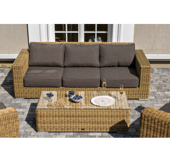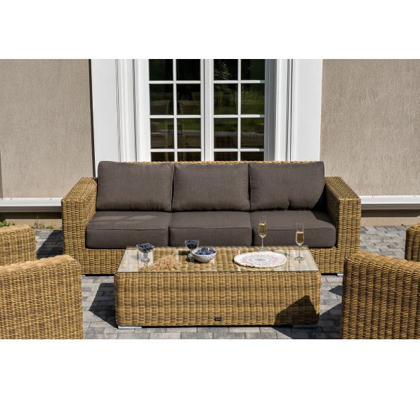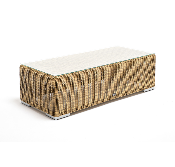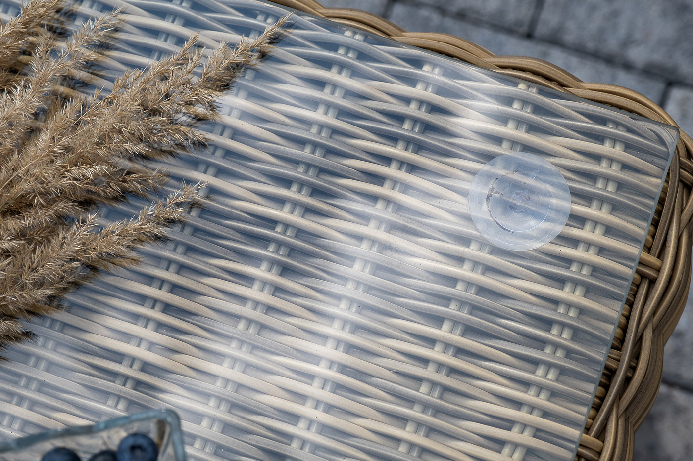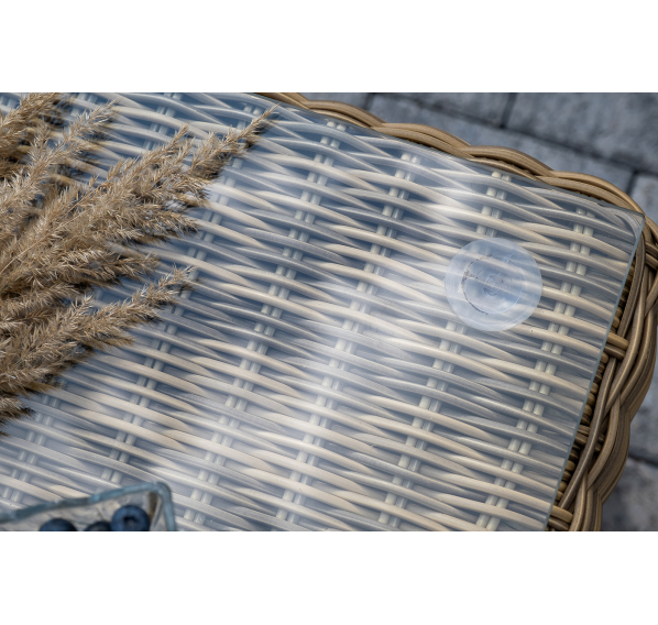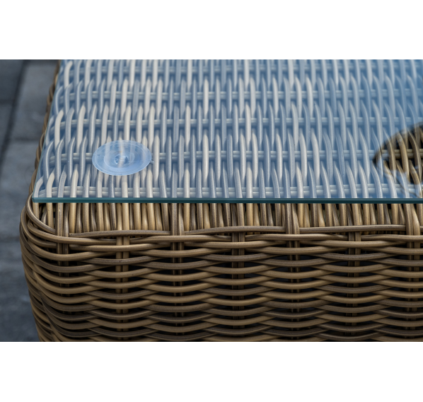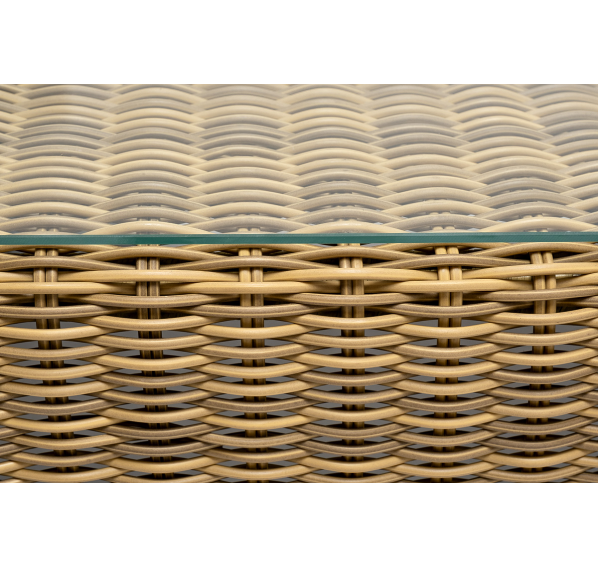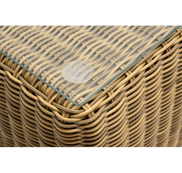 Поверхность плетеного столика представляет столешница из закаленного стекла – 5 мм.