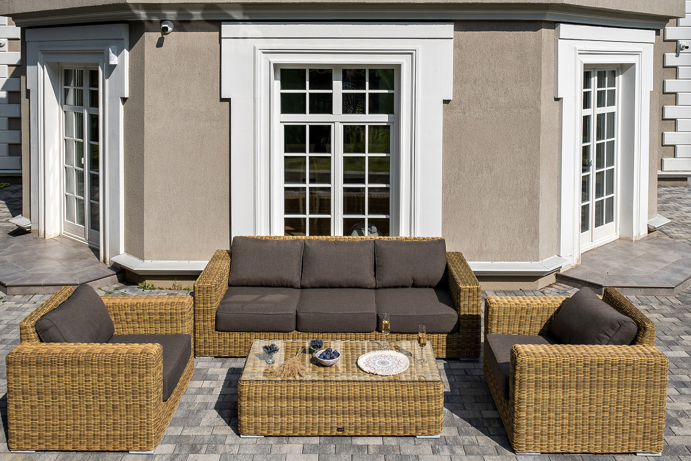 Комплект «Боно» с плетением из искусственного круглого ротанга для обустройства лаунж-зоны.