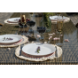 Вся мебель изготовлена из алюминия, вручную оплетенного круглым искусственным ротангом натурального соломенного оттенка. Столешница укомплектована ударопрочным стеклом, толщиной 5 мм. Данное стекло крепится к столу при помощи четырех вакуумных силиконовых присосок и поставляется в собранном виде.