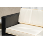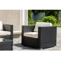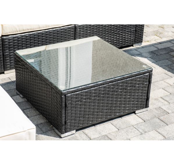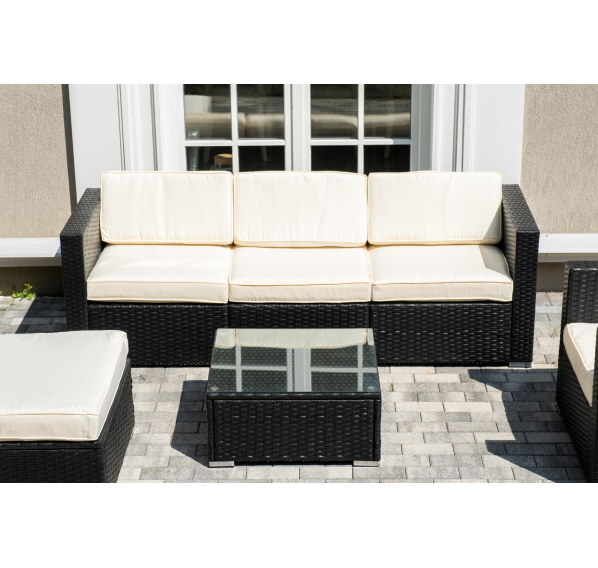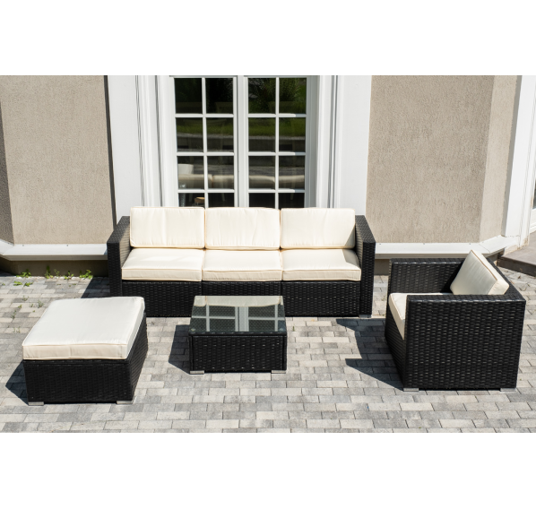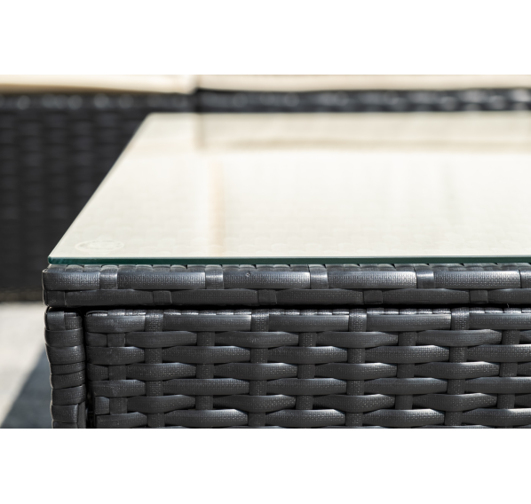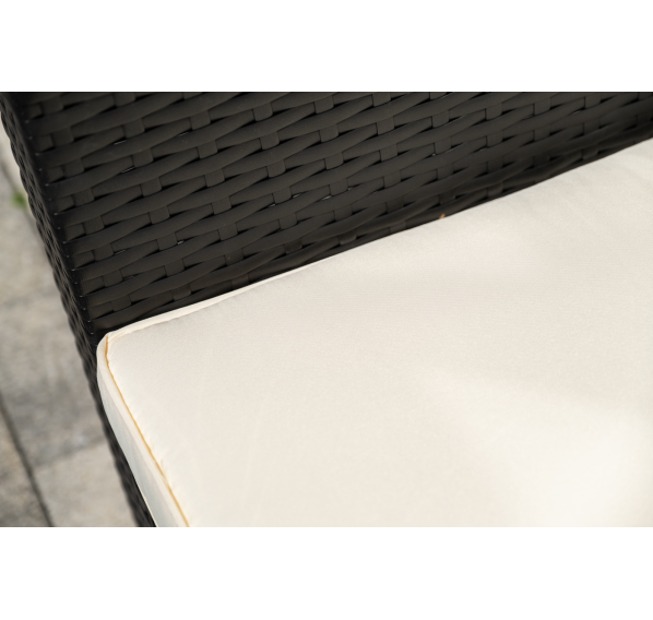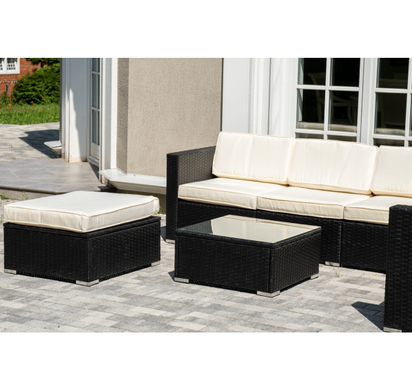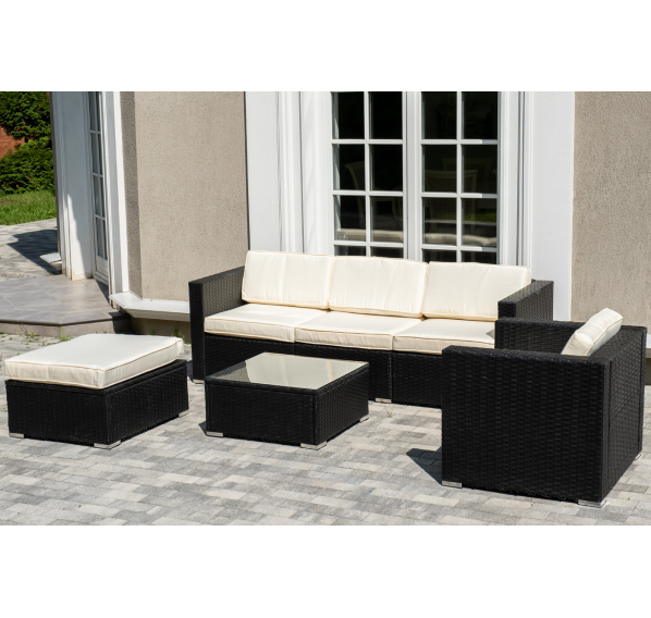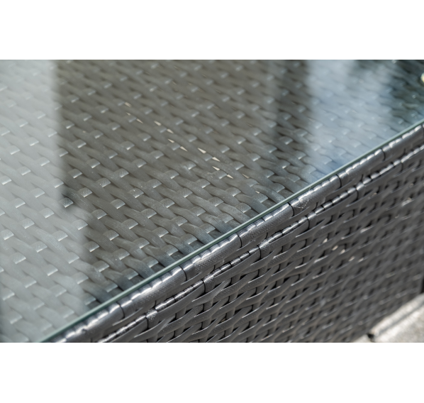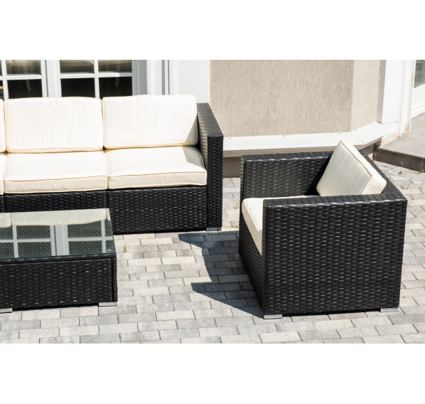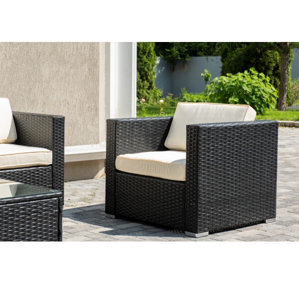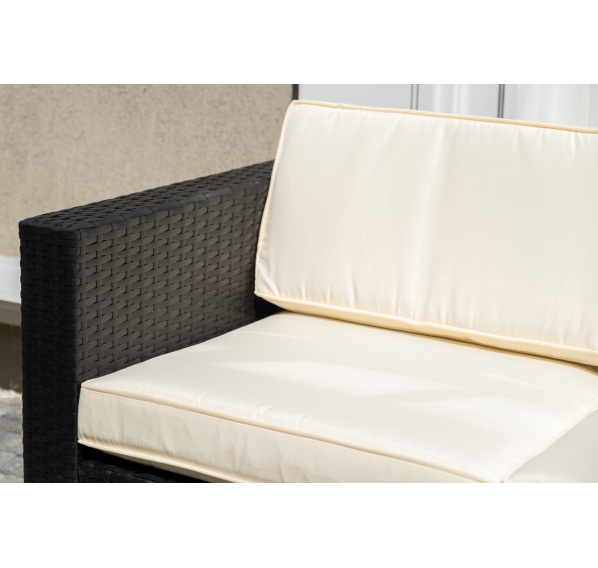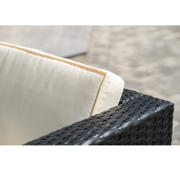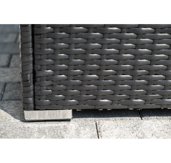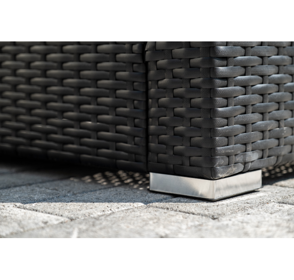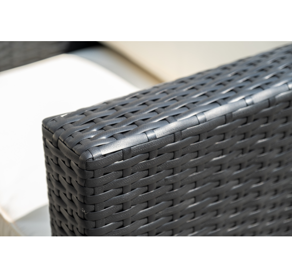 В основе мебели - стальной каркас и плоский искусственный ротанг. Каркас оплетен с помощью ручного метода и представлен в черном цвете.