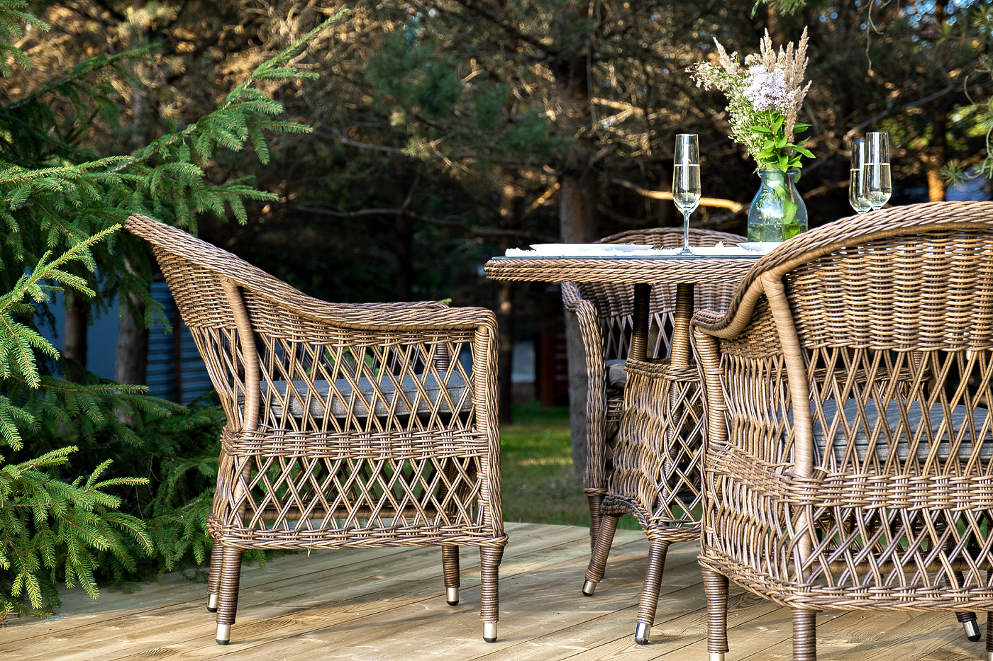Обеденная группа «Дольче» дает возможность обустроить обеденную зону на открытом дачном участке, веранде или беседке.