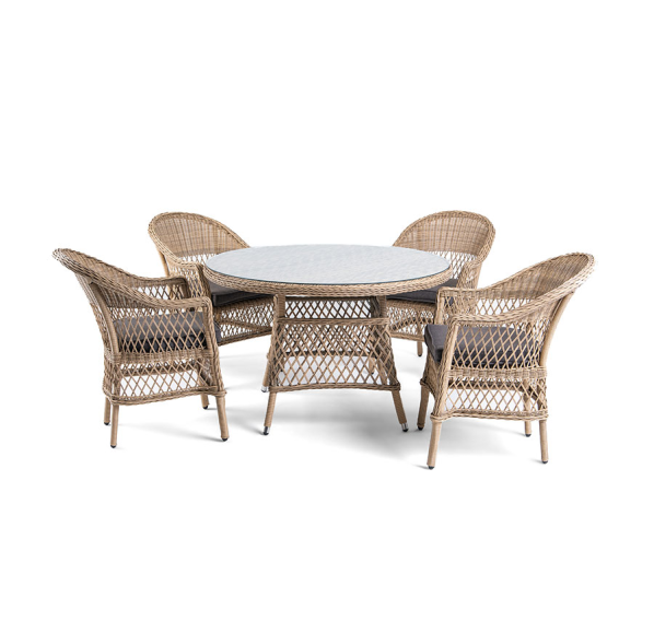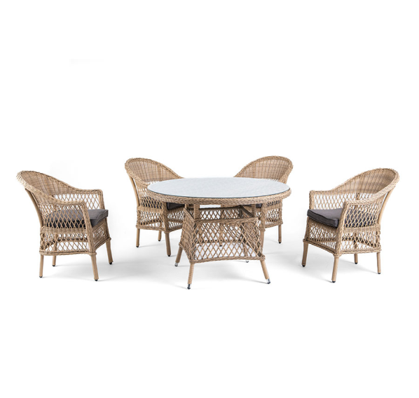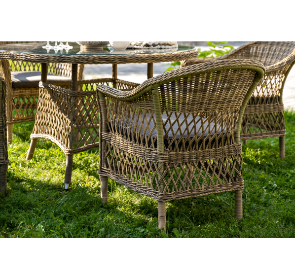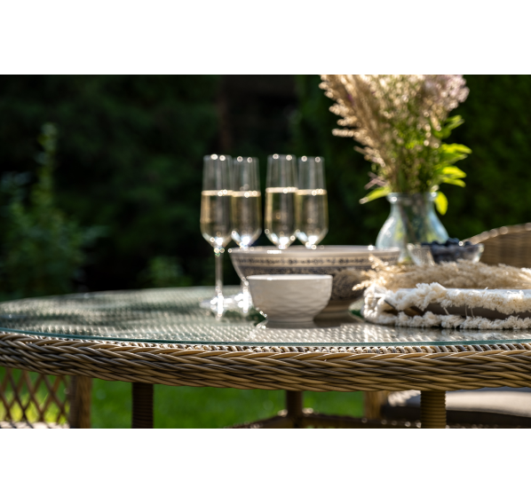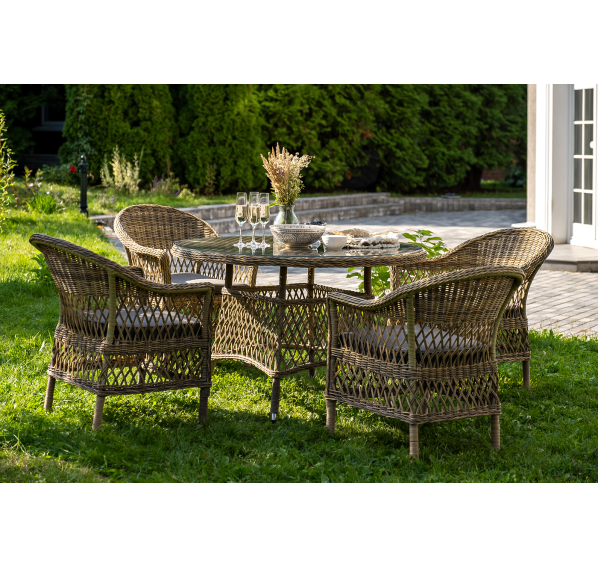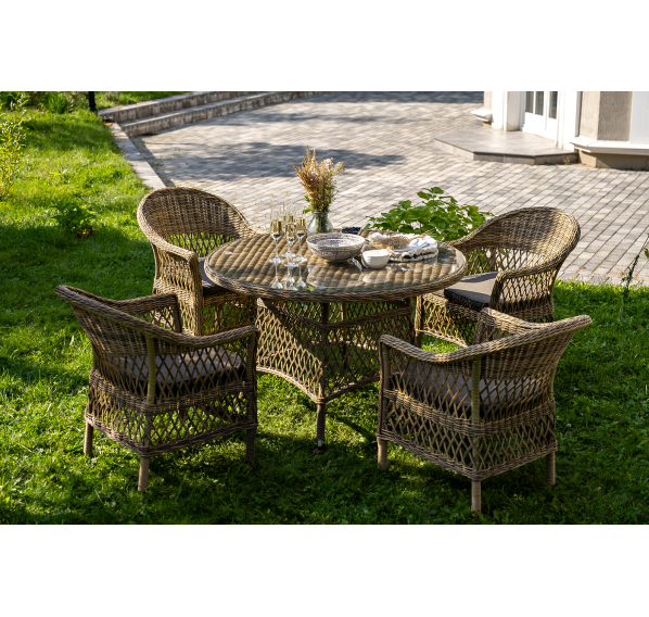 Обеденная группа «Дольче» дает возможность обустроить обеденную зону на открытом дачном участке, веранде или беседке.