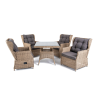 Особенность кресел в этой обеденной группе заключается в многофункциональности раскладной конструкции. В собранной форме - это стул, а с разложенной спинкой – комфортный лежак.