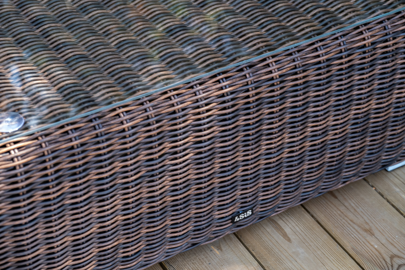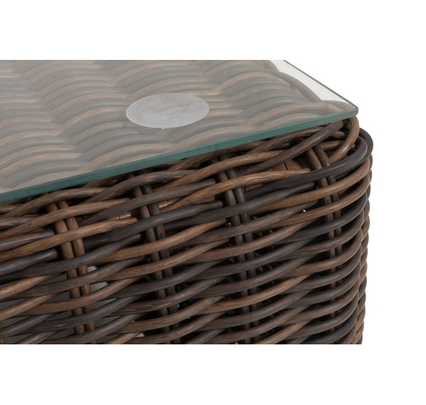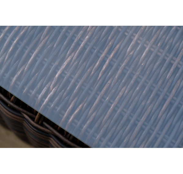 Плетеный столик имеет стеклянную столешницу, изготовленную из прочного закаленного стекла, толщина - 5 мм.