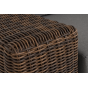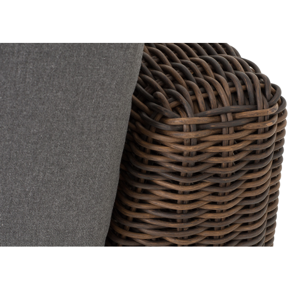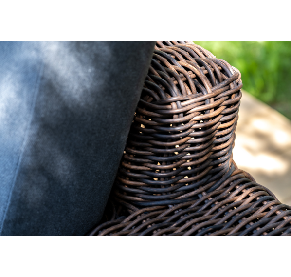 При изготовлении каркаса всех составляющих комплекта используется высокопрочный алюминий. Он дополнен круглым плетением из искусственного ротанга. Цвет – коричневый.