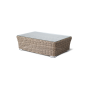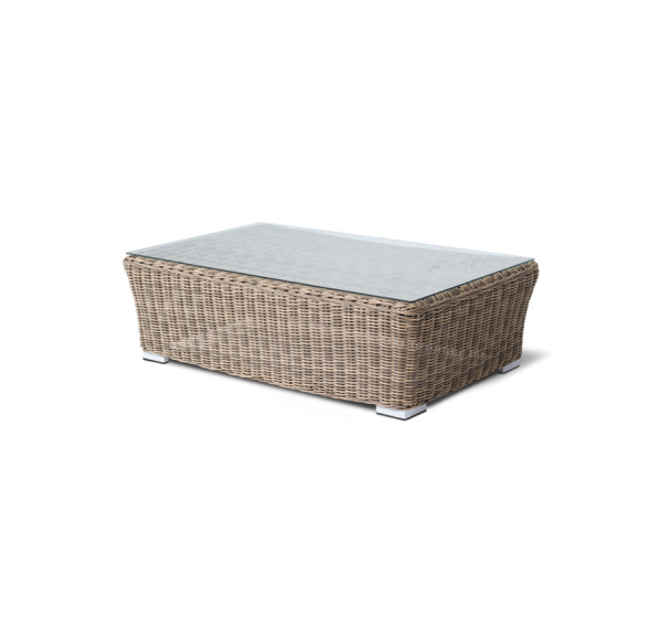 Столешница садового журнального столика создана из закаленного стекла. Его толщина составляет 5 мм. Крепится к плетеной поверхности с помощью вакуумных прозрачных присосок.