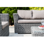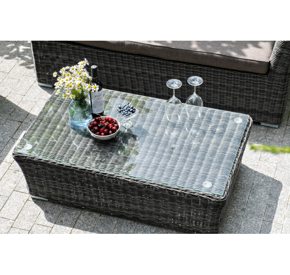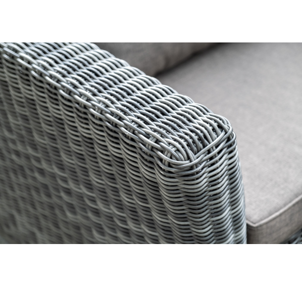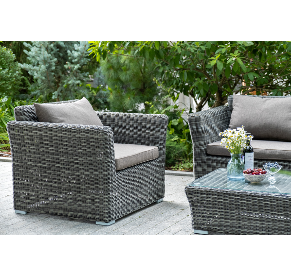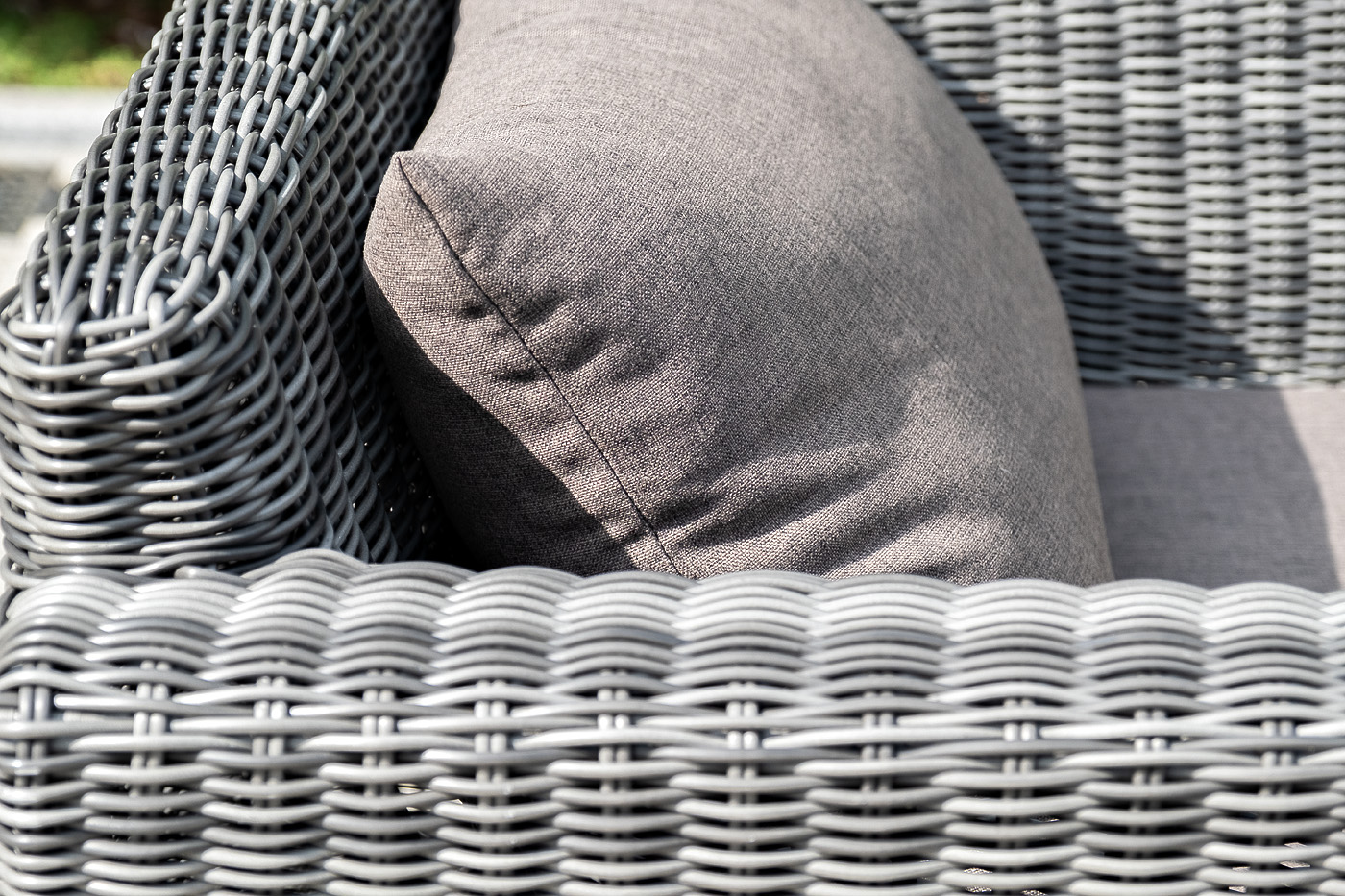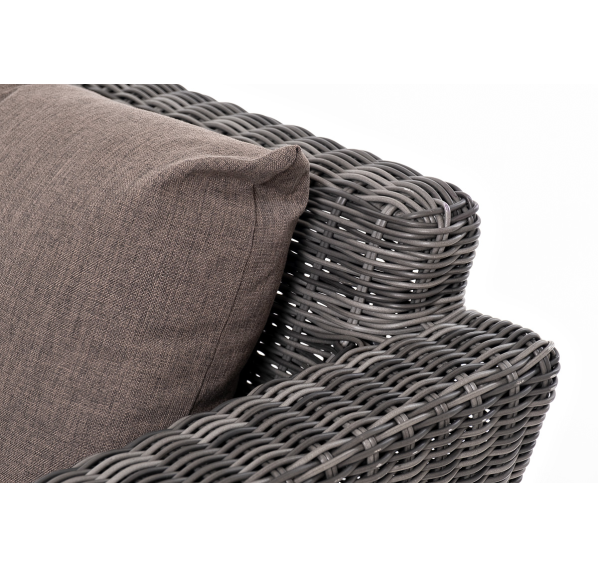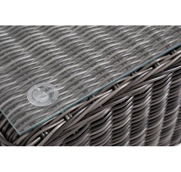 Из алюминия сделан устойчивый каркас мебели. Ее поверхность дополнена искусственным ротангом, из которого сделано ручное плетение, цвет "графит".
