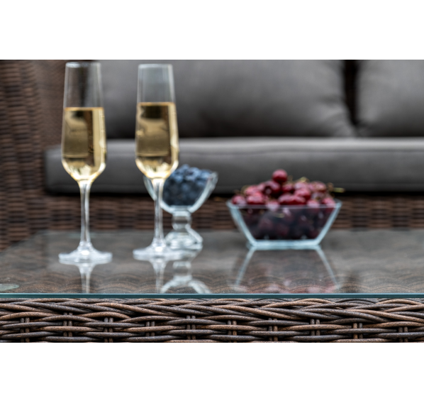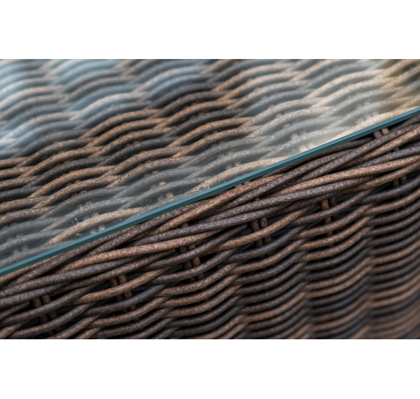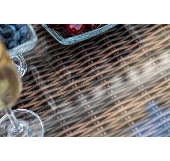 Поверхность плетеного столика представляет столешница из закаленного стекла – 5 мм.