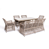 Обеденная группа выполнена в бежевом цвете. Комплект дополнит любой экстерьер в классическом стиле.