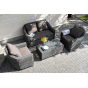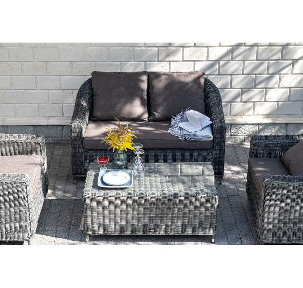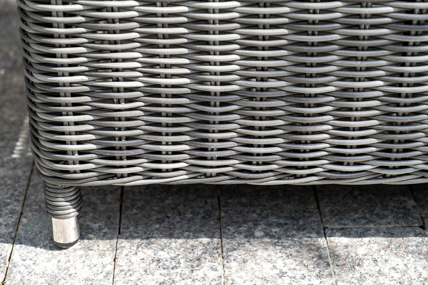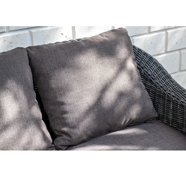 В основе мебели - алюминиевый каркас и круглый искусственный ротанг. Каркас оплетен с помощью ручного метода и представлен в графитовом цвете.