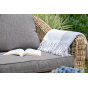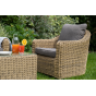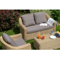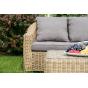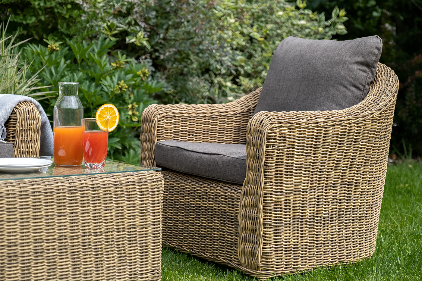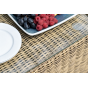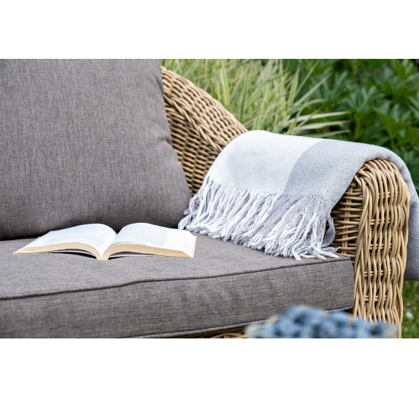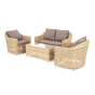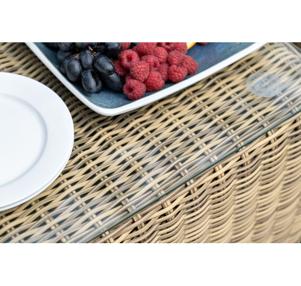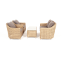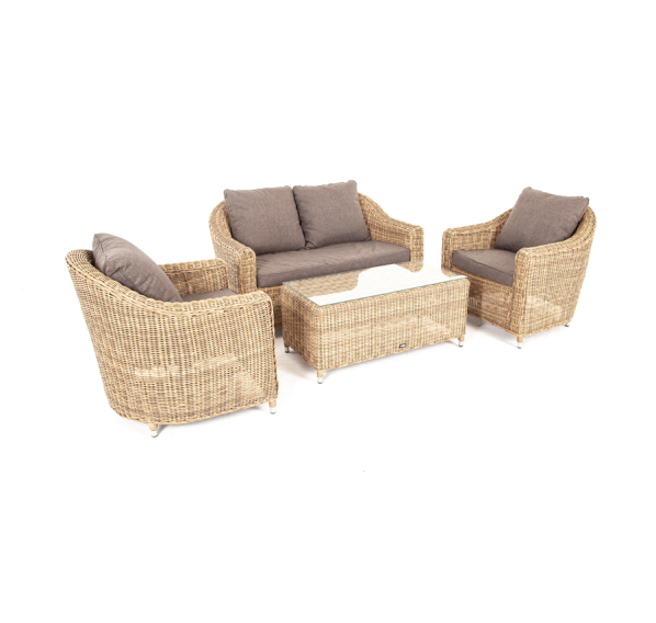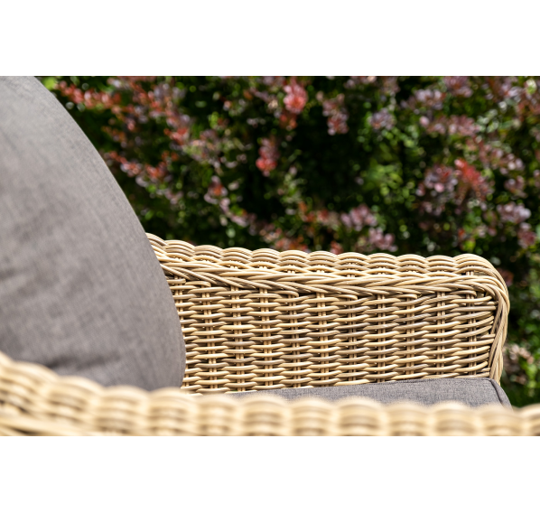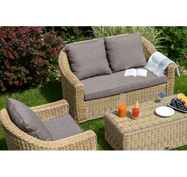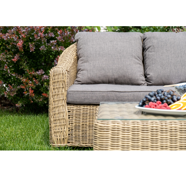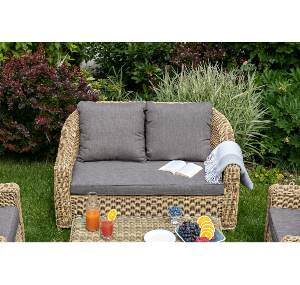 В основе мебели - алюминиевый каркас и круглый искусственный ротанг. Каркас оплетен с помощью ручного метода и представлен в соломенном цвете.