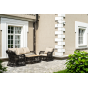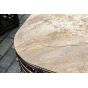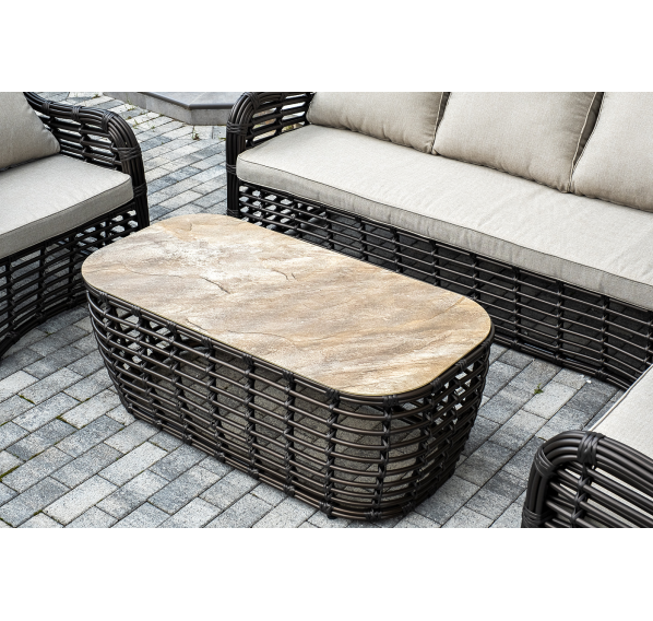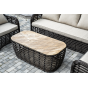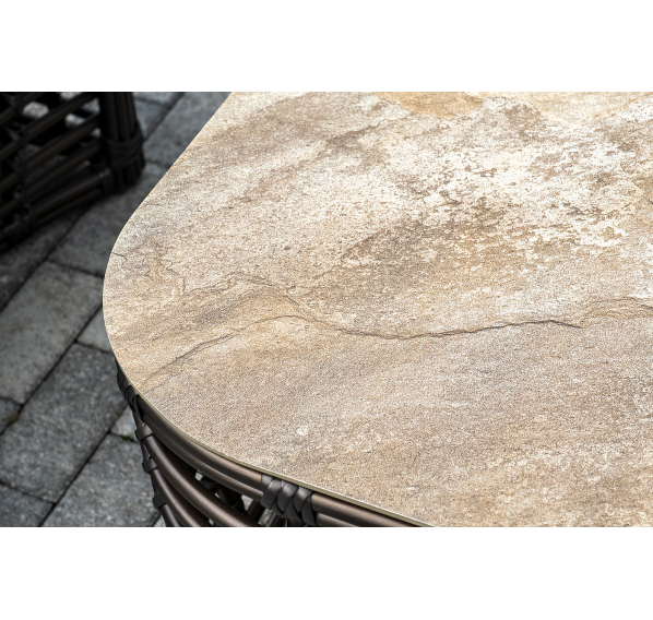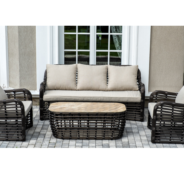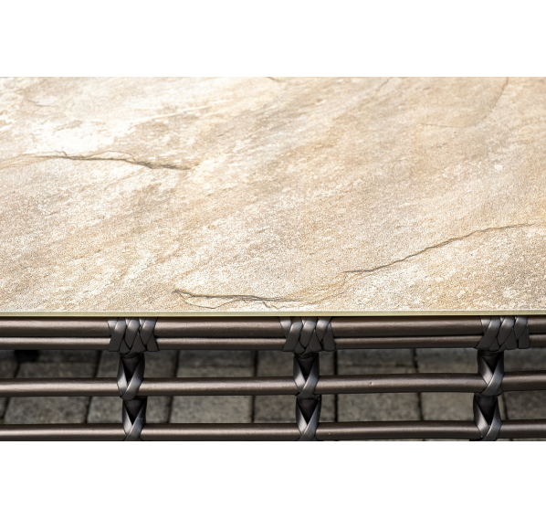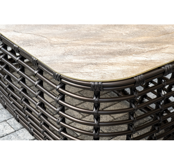 Журнальный столик выполнен из алюминия, вручную оплетенного круглым искусственным ротангом. Столешница из закаленного стекла толщиной 5 мм. Благодаря износостойким материалам, стол пригоден для использования на улице при любой погоде и не требует специальных условий хранения.