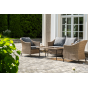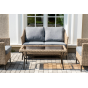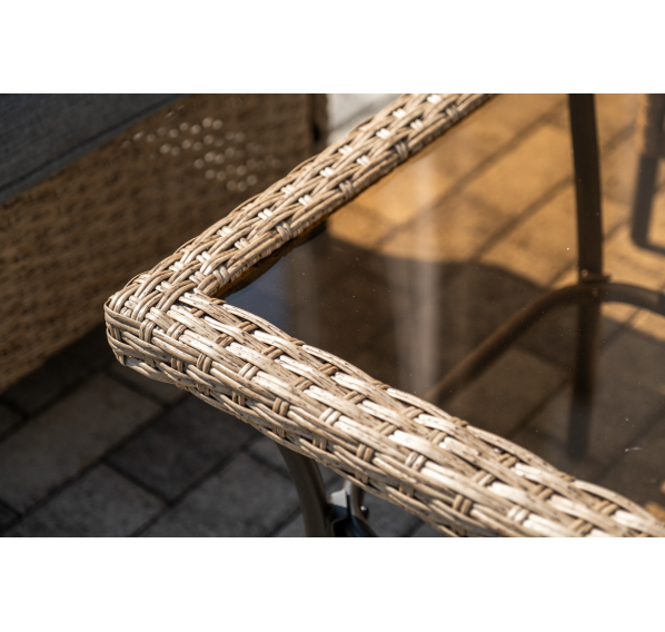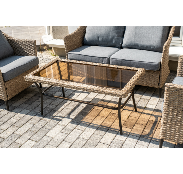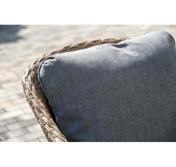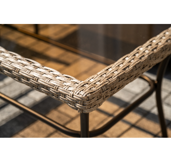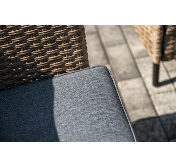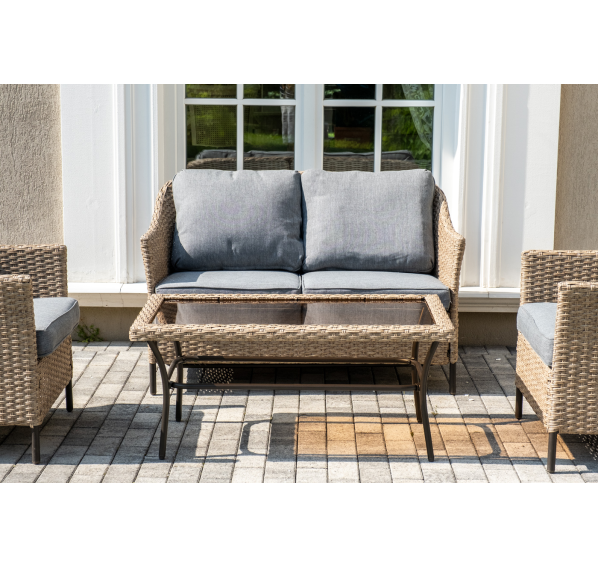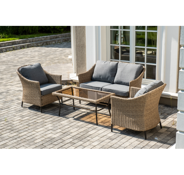 Лаунж-зона «Овьедо» подходит для размещения четырех персон. За прочность конструкции отвечает стальной каркас.