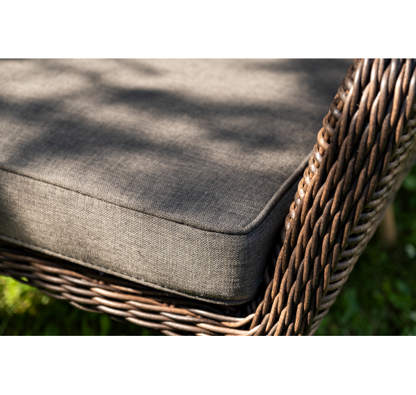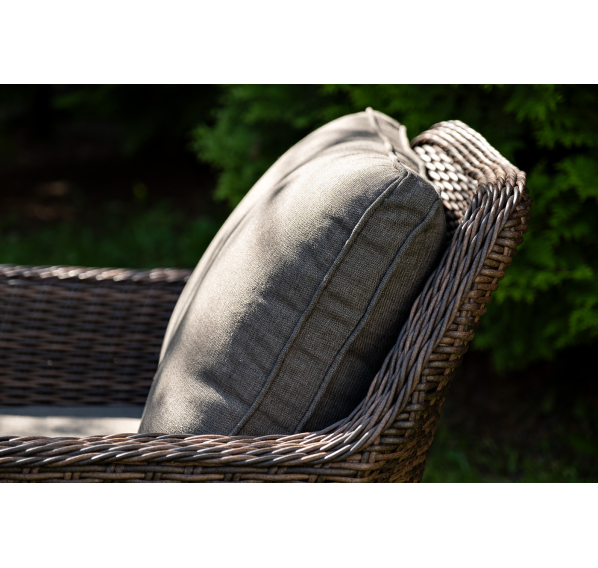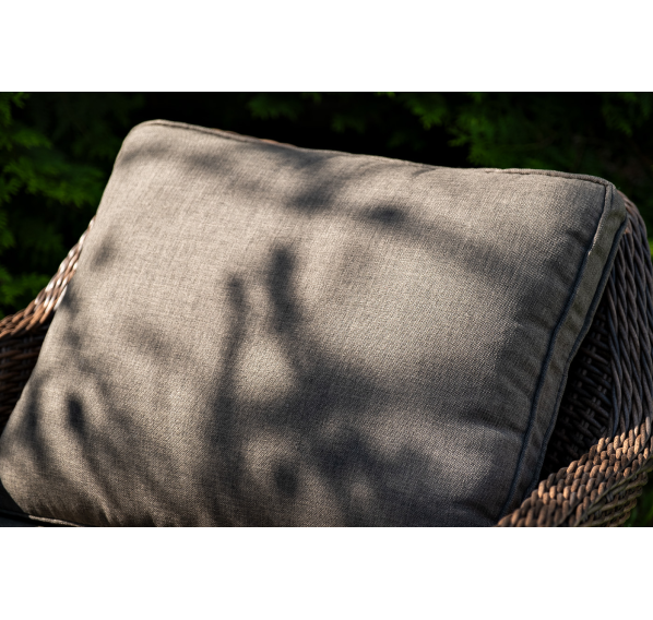 Диван и кресла оснащены подушками со съёмными чехлами серого цвета. При изготовлении чехлов используется высокопрочный полиэстер, плотность - 300гр/м2 и влагоотталкивающая пропитка.