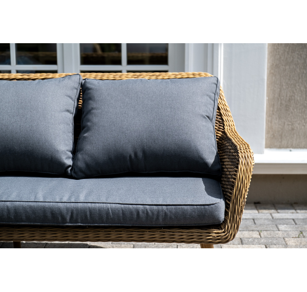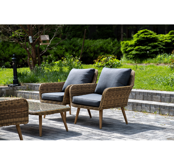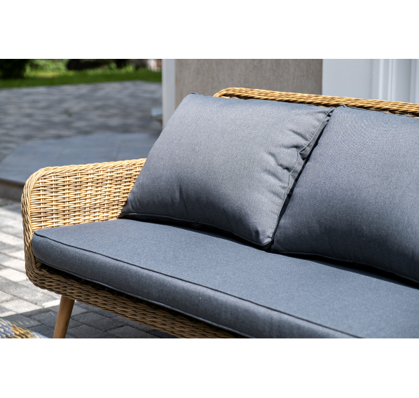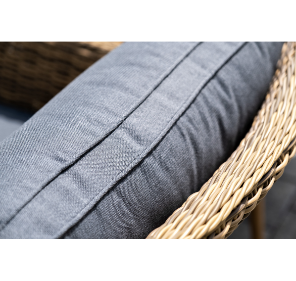 Диван и кресла оснащены подушками со съёмными чехлами серого цвета. При изготовлении чехлов используется высокопрочный полиэстер, плотность - 300гр/м2 и влагоотталкивающая пропитка.