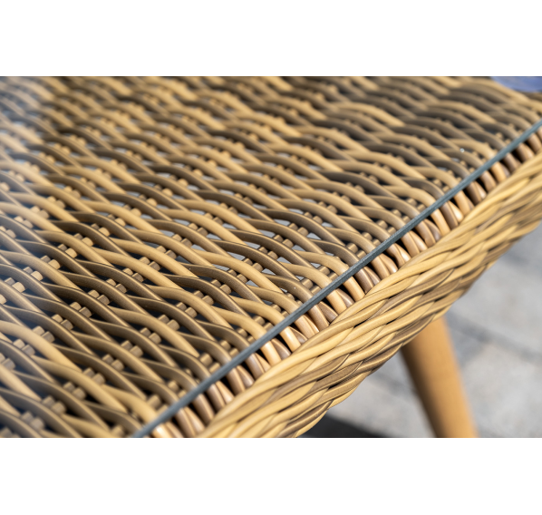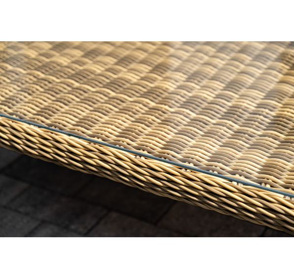 Плетеный столик укомплектован столешницей из закаленного стекла, толщиной – 5 мм.