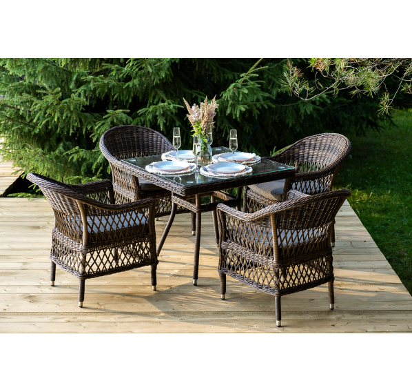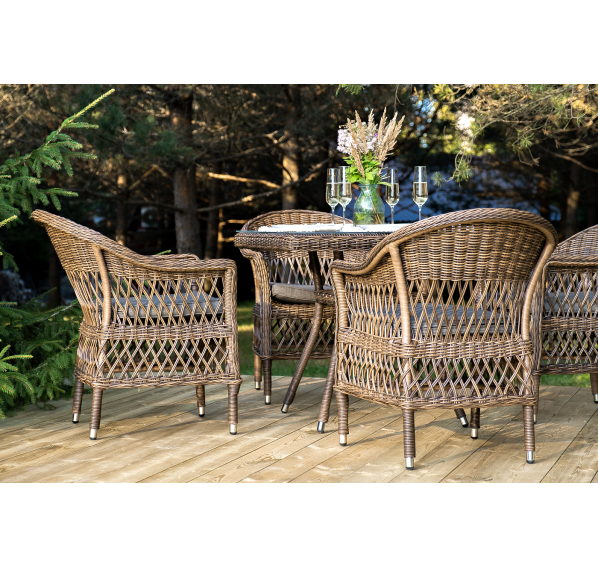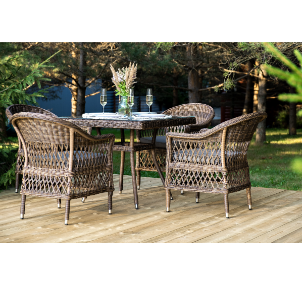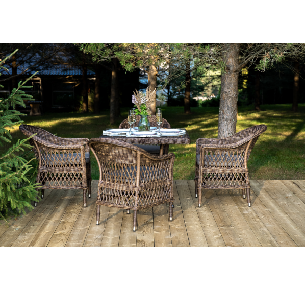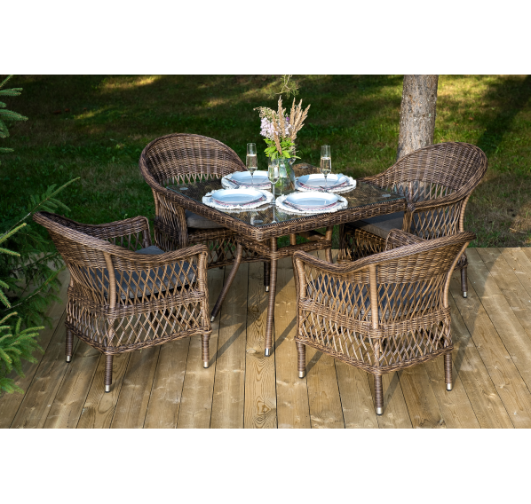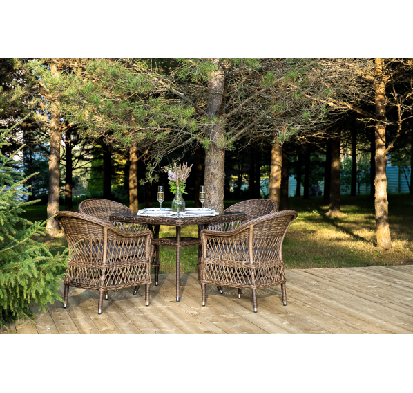 Комплект «Сицилия» - это обеденная группа из искусственного ротанга, которая рассчитана на 4 персоны.
