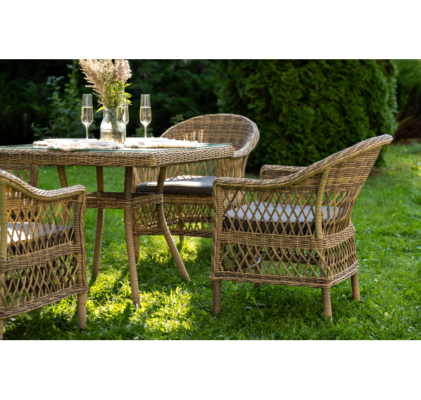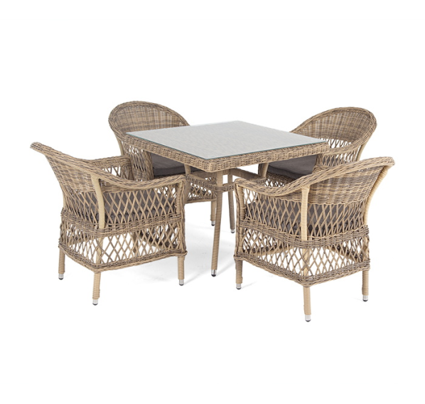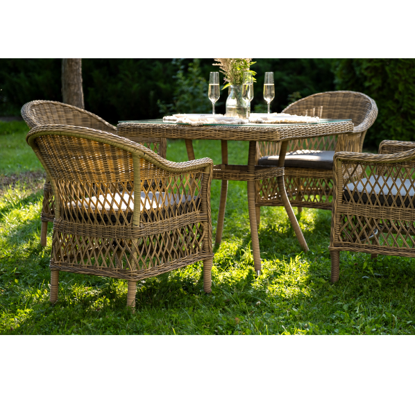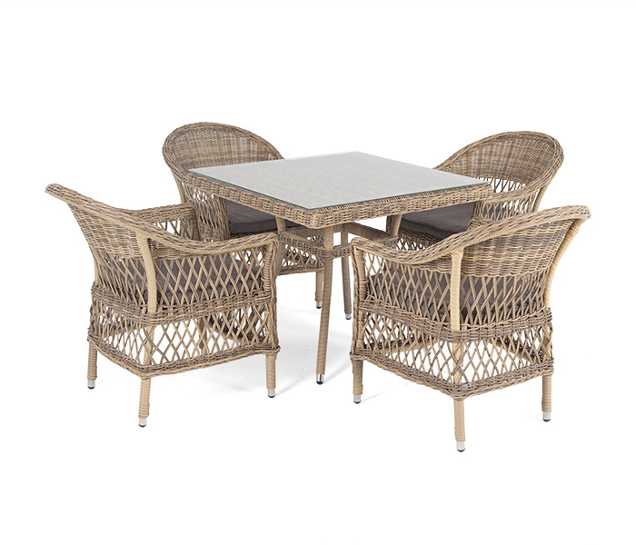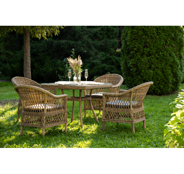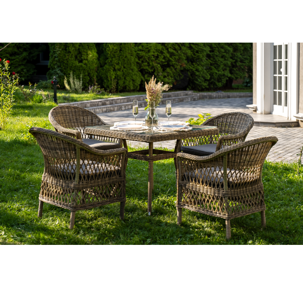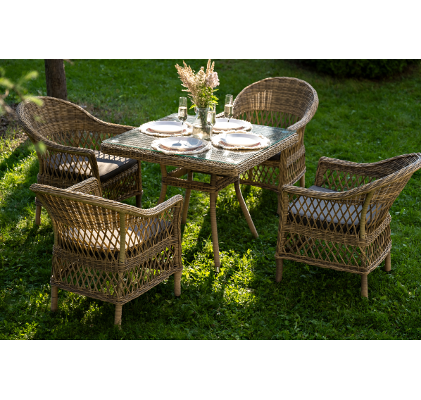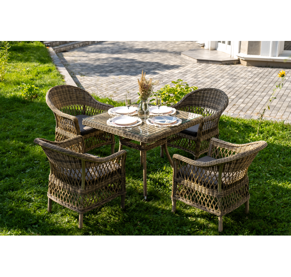 Комплект «Сицилия» - это обеденная группа из искусственного ротанга, которая рассчитана на 4 персоны.