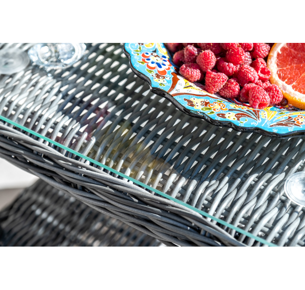 Одноместная лаунж-зона «Толедо» для зоны отдыха выполнена из круглого искусственного ротанга в цвете графит.