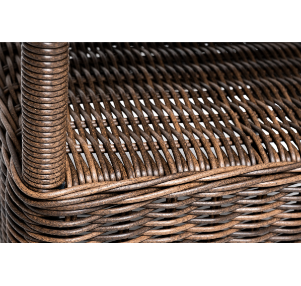Одноместная лаунж-зона «Толедо» для зоны отдыха выполнена из круглого искусственного ротанга в натуральном коричневом цвете.
