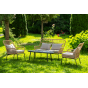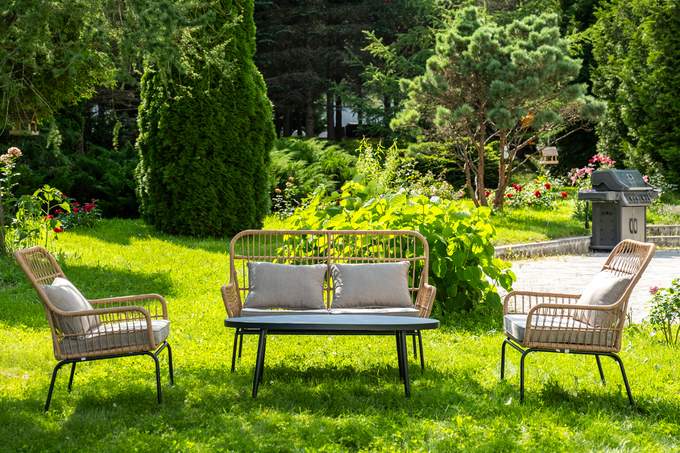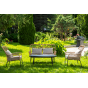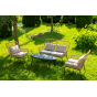 Лаунж-зона «Версаль» подходит для размещения четырех персон. За прочность конструкции отвечает стальной каркас.