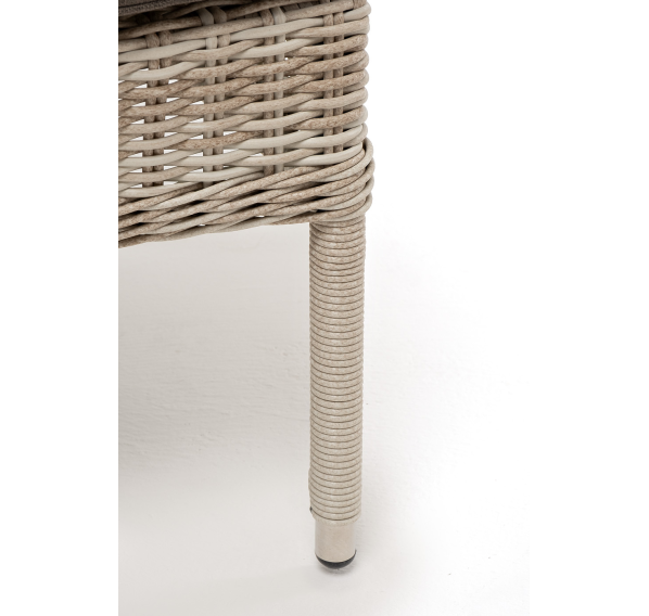 Каркас выполнен из высококачественного алюминия, который оплетен круглым искусственным ротангом бежевого цвета.