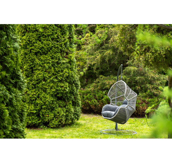 Подвесное плетеное кресло-кокон «Апулия» для организации зоны отдыха в саду, на террасе или летней площадке ресторана.