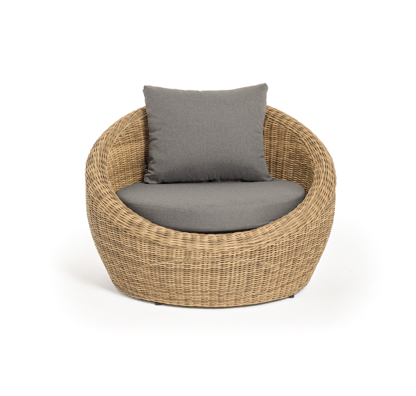 Кресло «Барселона» входит в комплект лаунж-зоны с плетеным диваном и журнальным столиком аналогичной серии. Так же его можно использовать, как самостоятельный элемент мебели.