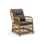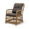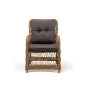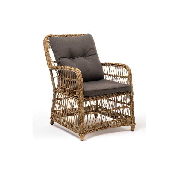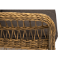 Алюминиевый каркас находится в основе мебели. Он характеризуется устойчивостью и высокой прочностью. Задекорирован ручной круглой оплеткой, которая сделана из искусственного ротанга. Представлена в соломенном оттенке.