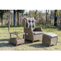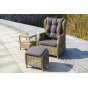 Садовое кресло дополнено практичными подушками для комфортного размещения. Они выполнены в сером цвете из полиэстера, плотность которого достигает 300гр/м2. Материал имеет влагоотталкивающую пропитку.