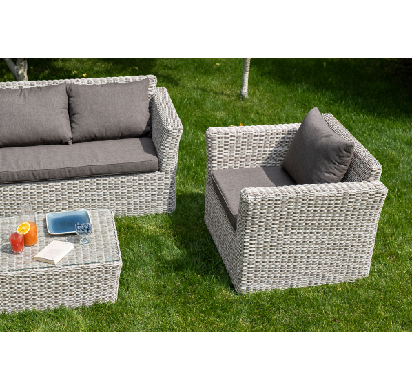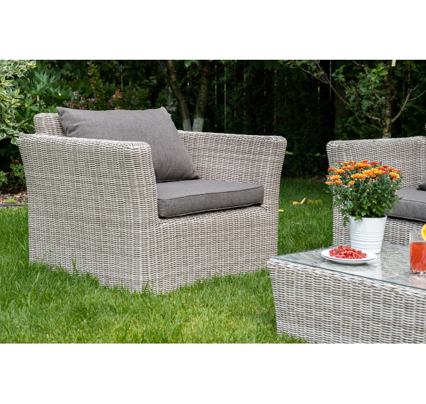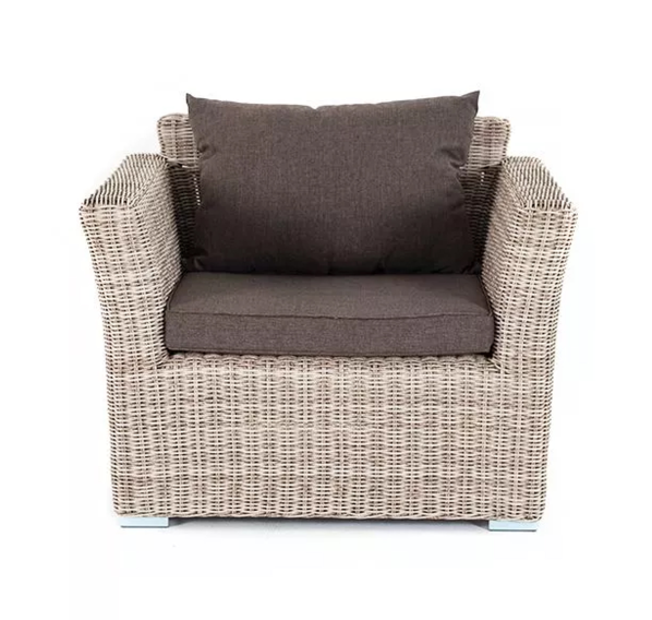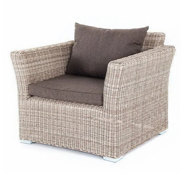Кресло из круглого искусственного ротанга «Капучино» бежевого цвета, отлично вписывается в садовый антураж. В основе - прочный алюминиевый каркас, который отвечает за надежность конструкции.