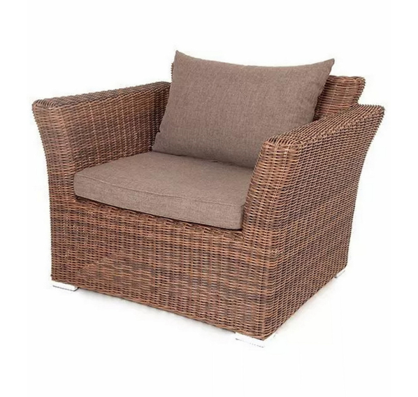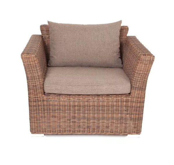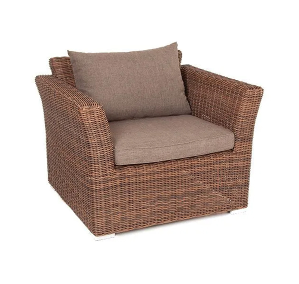 Плетеное кресло «Капучино» дает возможность комфортно провести время в зоне отдыха. Размер модели – 1040×865×815 мм.
