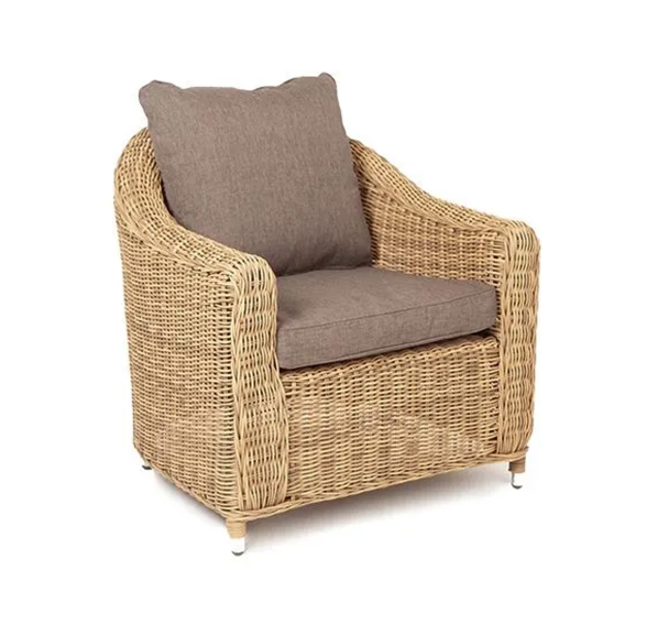 Кресло из круглого искусственного ротанга «Кон Панна» имеет компактные размеры 800×800×800 мм.