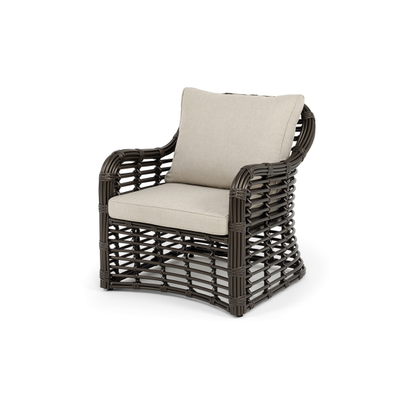 Каркас мебели сделан из прочного алюминия с высокими эксплуатационными качествами. Оплетен вручную с помощью круглого искусственного ротанга. Представлено в бронзовом оттенке.