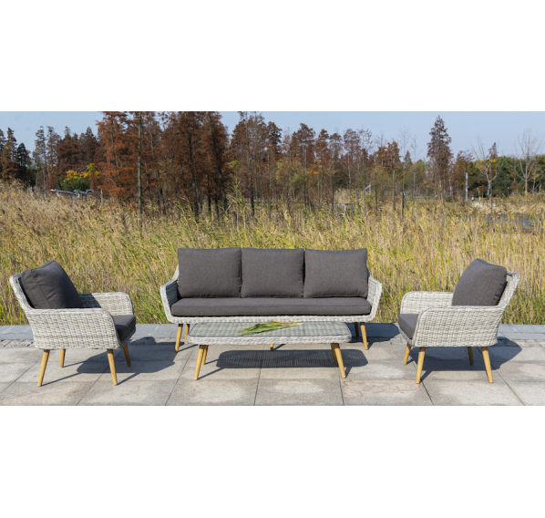 Надежность и износостойкость мебели гарантирует каркас, который сделан из качественного алюминия. Ее дополняет ручное плетение, при изготовлении которого используется искусственный ротанг. Представлена модель в бежевом цвете.