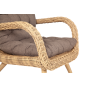 Размер модели – 690×810×990 мм. При изготовлении ее каркаса используется прочный алюминий с высокой износостойкостью. Имеет ручное плетение, которое выполнено из искусственного ротанга. Представлена в натуральном соломенном цвете.