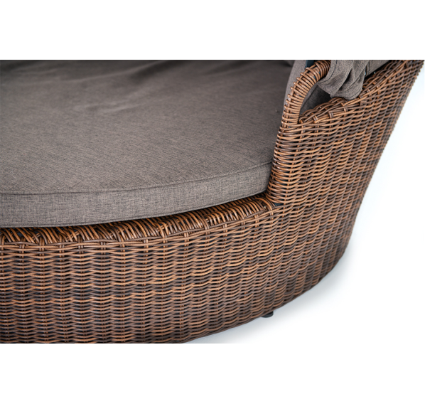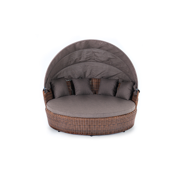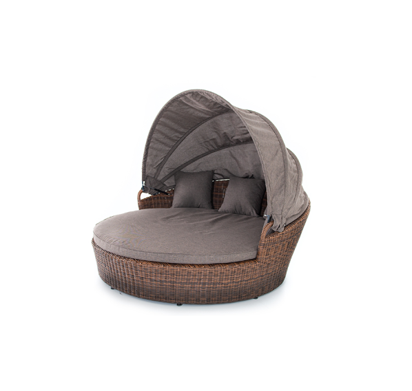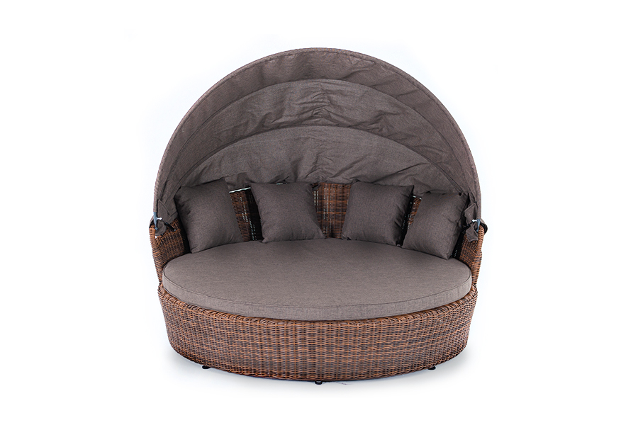 «Стильяно» - кровать из искусственного ротанга круглой формы. Она идеально подойдет для использования на открытом воздухе, в том числе и возле бассейна.