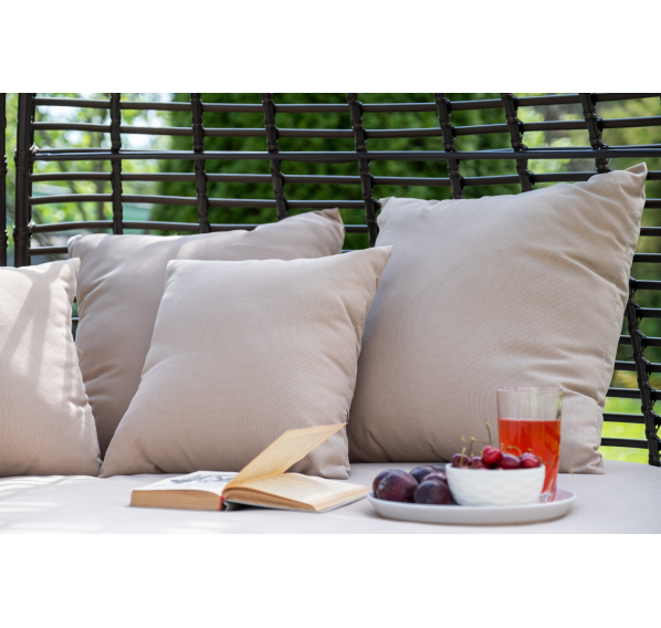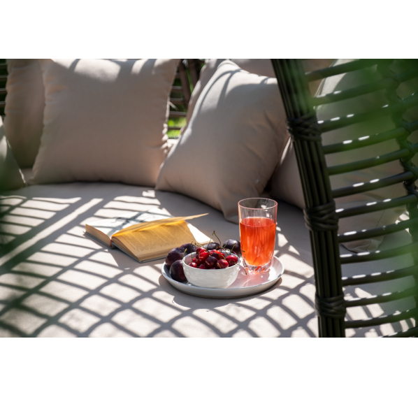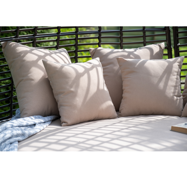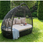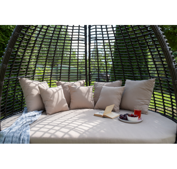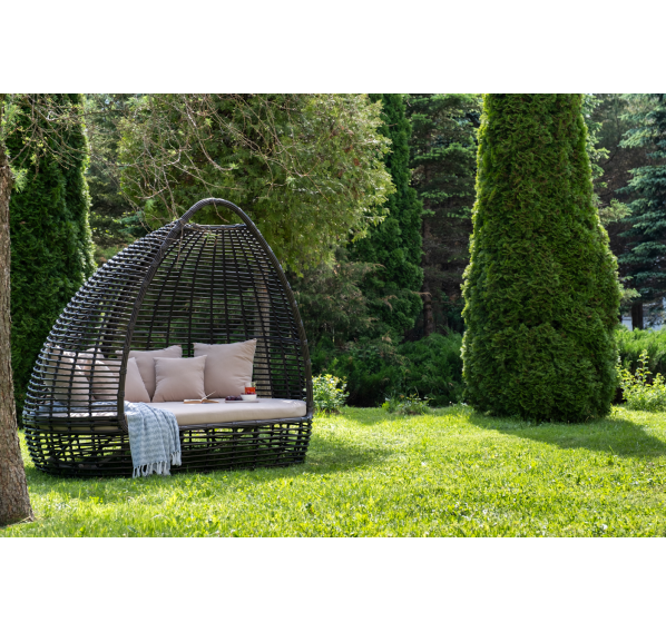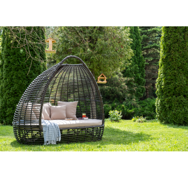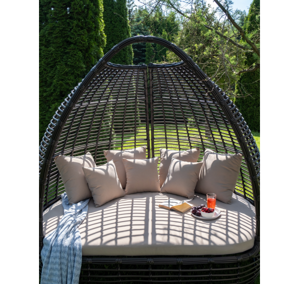 Функциональная полукруглая кровать выполнена плетением вручную из искусственного ротанга. Конструкция усилена алюминиевым каркасом.