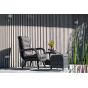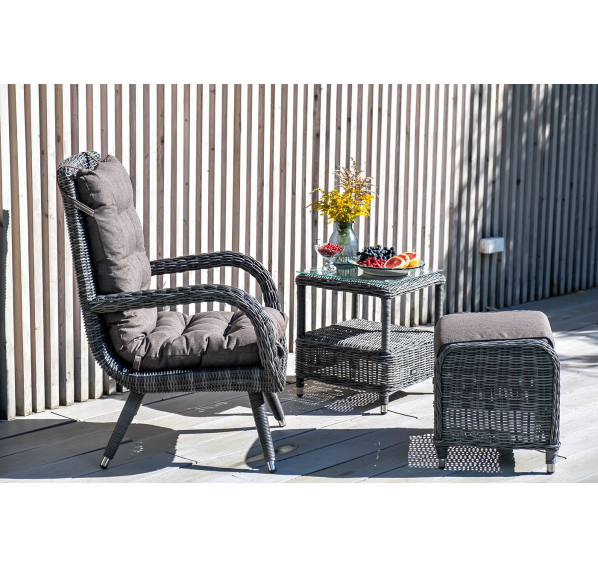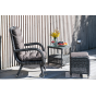 Алюминиевый каркас используется при изготовлении основы пуфа. В роли декоративного элемента выступает ручная оплетка, созданная из искусственного ротанга. Представлена в цвете графит.